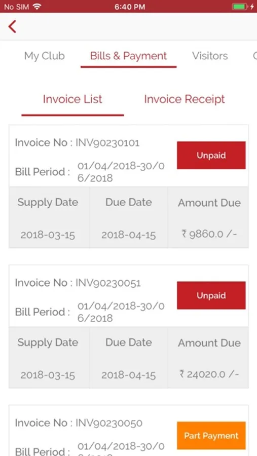 All maintenance due, payment history including receipts and bills are maintained in the App.