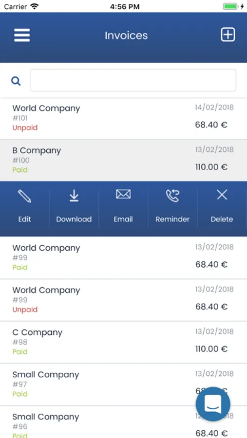 Create and sent financial documents to your company clients, from your mobile phone, in any moment.