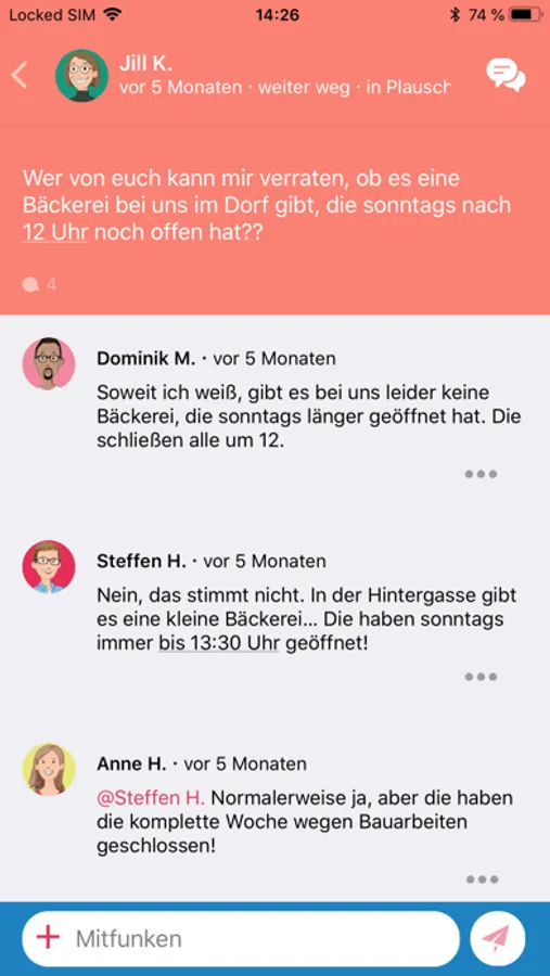 DorfFunk ist die Kommunikationszentrale für ländliche Regionen! Bürger*innen können ihre Hilfe anbieten, Gesuche einstellen oder einfach zwanglos miteinander plauschen.