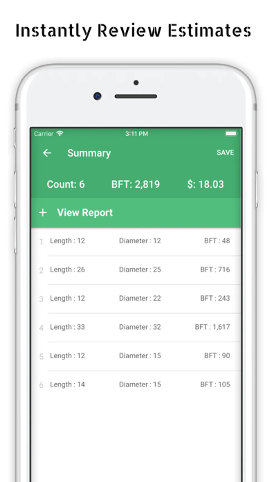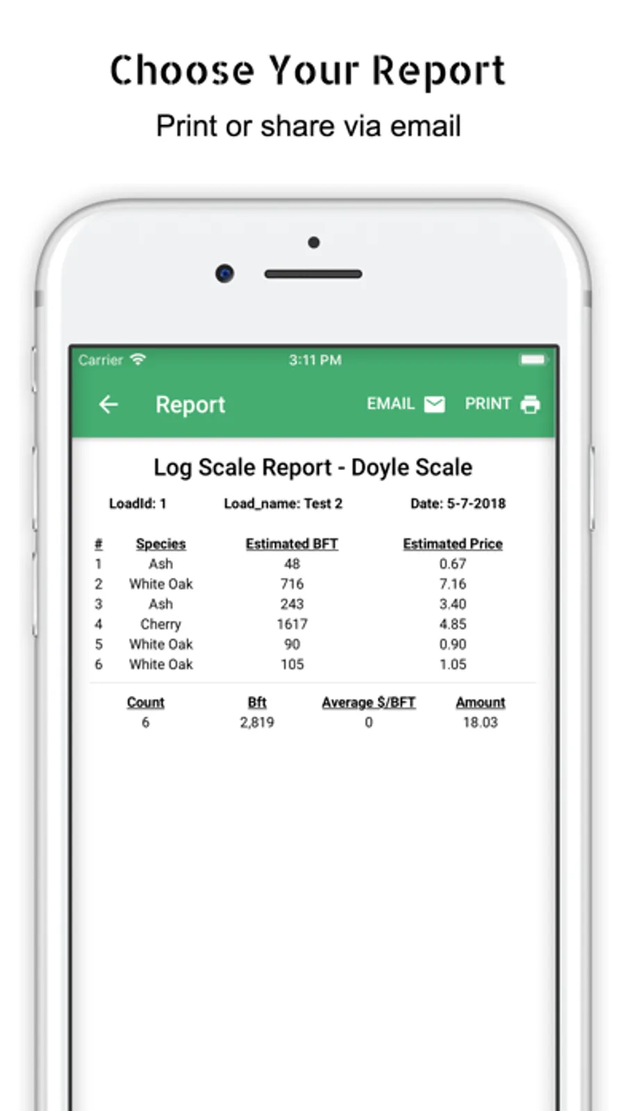Timber Cruising is part of the Lumber Inventory Tracking System (LiTS) suite of apps. All LiTS apps can be customized and tailored to better suit your company. Timber Cruising is a clean and simple DBH scaling experience for pricing timber. Building detailed and summarized reports comes at the expense of just a few taps on the screen.