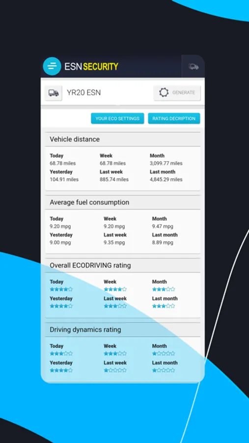 Because the pressure to keep up with your business doesn’t stop when you are away from your office computer, the ESN Security mobile app allows you to access key information about your fleet.