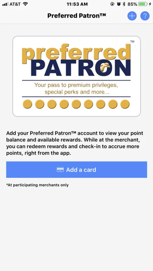 The Preferred Patron Wallet app allows members of participating merchants to store their plastic loyalty cards in the digital wallet. Multiple cards can be loaded. Once loaded, the QR code for each card can be scanned at in-store tablet devices instead of using a plastic card. Members may also modify their contact information and preferences, view offers and rewards, claim rewards and check-in, directly using the app.
