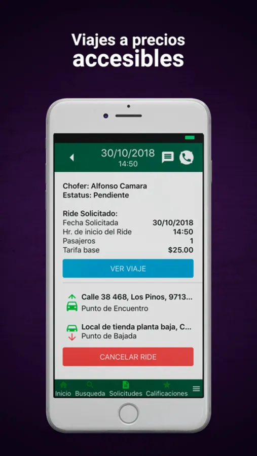 Y para el transporte del día a día, en esta sección te ofrecemos la oportunidad de buscar un "Ride", tan fácil cómo escoger tu punto de partida y punto de destino, con esto podrás visualizar a los usuarios que van a recorrer esas rutas y podrían llevarte a tu destino como (car Pool), escogiendo entre usuarios por confiabilidad, calificaciones, comentarios e incluso en el caso de mujeres, existe la opción de sólo mujeres.