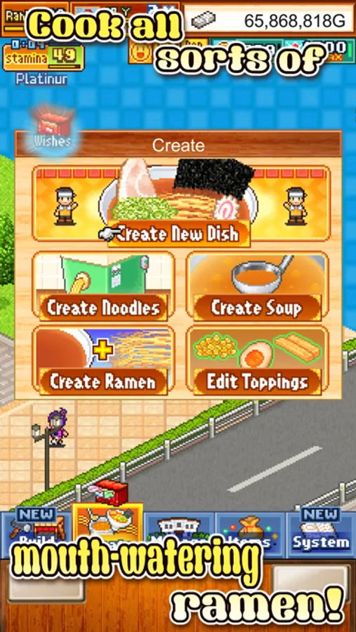 Face off rivals at ramen arena contests and make your Ramen Hall prosper. Become THE Ramen Sensei!