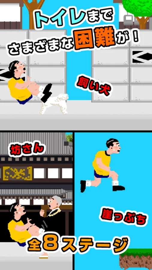 It is a game to tap on the timing, jump over obstacles and tricks in the jump, dash to the toilet. It is a free and vulgar game that anyone can easily enjoy.