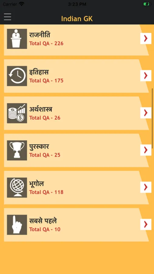 We try to add more and more question form all category but right now we can add approx 20 category like Indian History, science, computer and technologies and sport question. we can continues try to add more and more question.