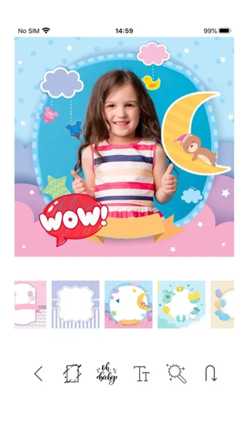 - Use our collection of over 1,000 stickers and artworks to enhance your baby’s pictures