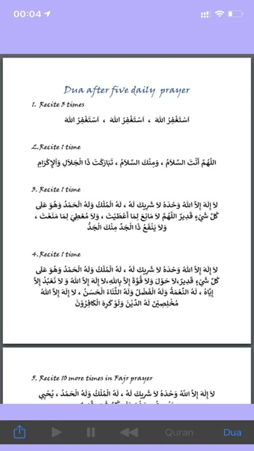 In Azkar book page, press pause, start or restart to control the audio. Drag the slider forward or backward to move the audio to the required position or time.