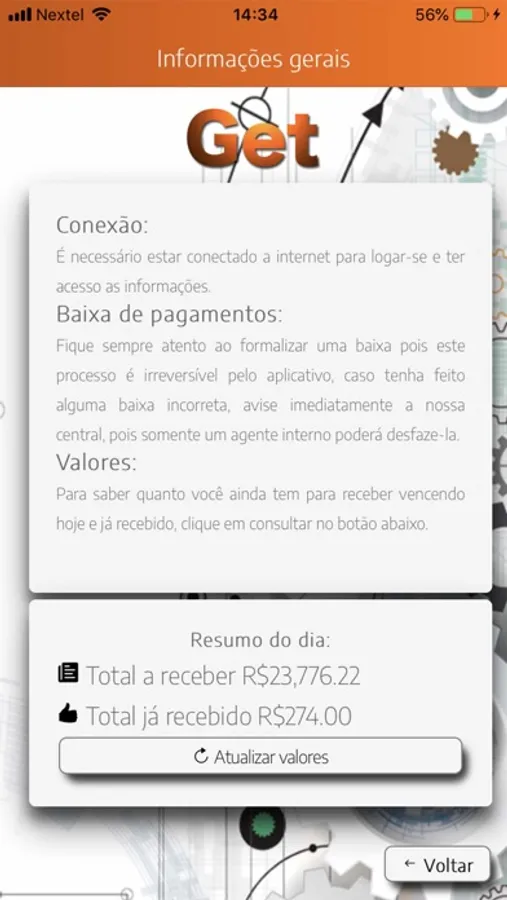 Em tempo real é possível consultar qual o valor total a receber e já recebido sempre que necessário, este recurso é de suma importância para o cobrador externo (Motoboy por exemplo).