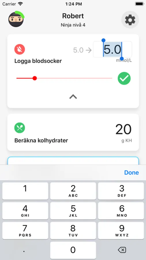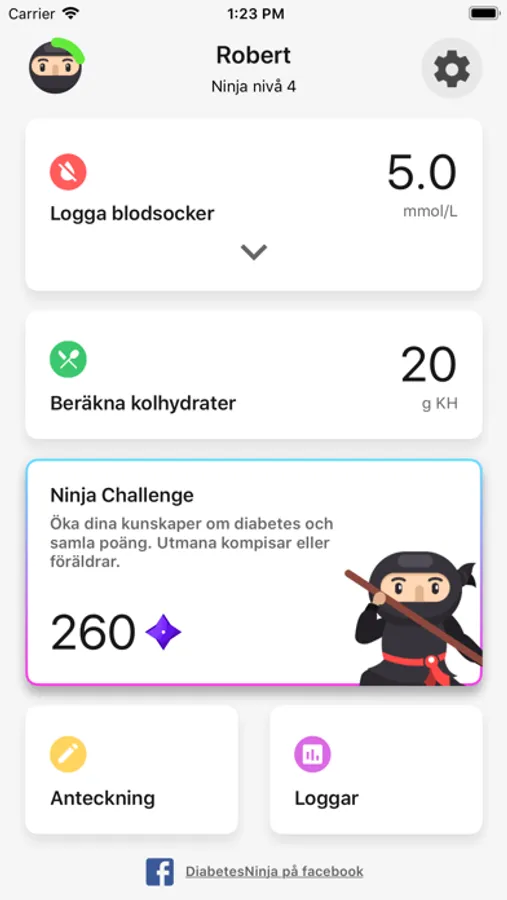 För barn och vuxna med typ 1-diabetes. DiabetesNinja hjälper dig att hålla koll på ditt blodsocker och beräkna intag av kolhydrater. Du kan enkelt söka fram olika livsmedel eller hela maträtter för att beräkna dina kolhydrater. Specifika händelser kan du notera och spara i din logg. På ett enkelt sätt kan du dela din information med tex dina föräldrar så att de blir uppdaterade på vad som händer under dagen. Vid varje registrering skickas en push-notifiering till de personer som du valt att dela din information med.