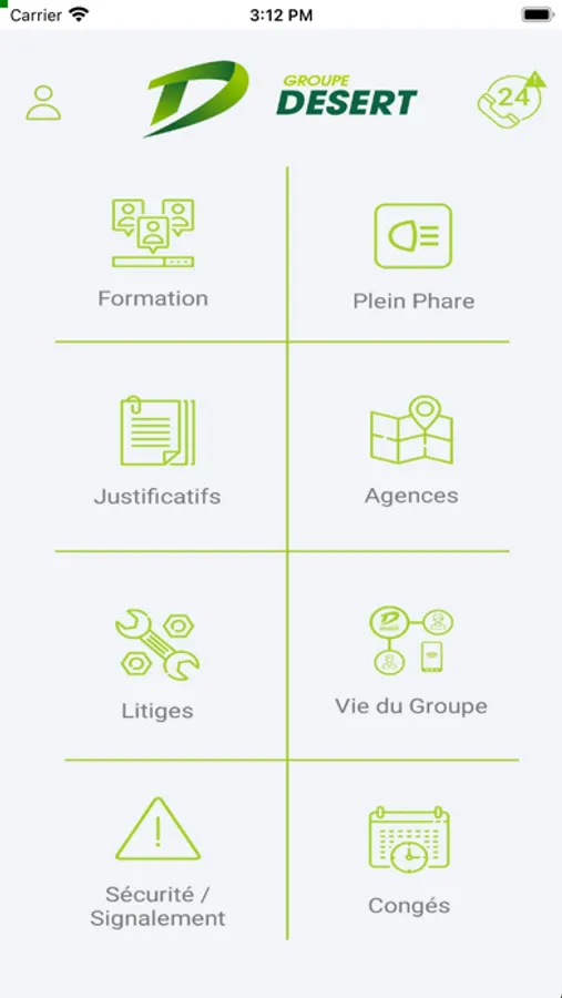 Application permettant l'utilisation des services du Groupe Désert.