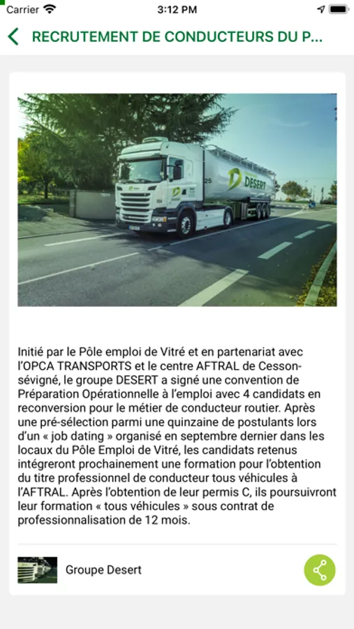 Permet l'accès au services numériques du Groupe Désert. L'application permet aussi de consulter publiquement les actualités du groupe ainsi que les différents lieux (Agences, Ateliers, Stations de nettoyage).