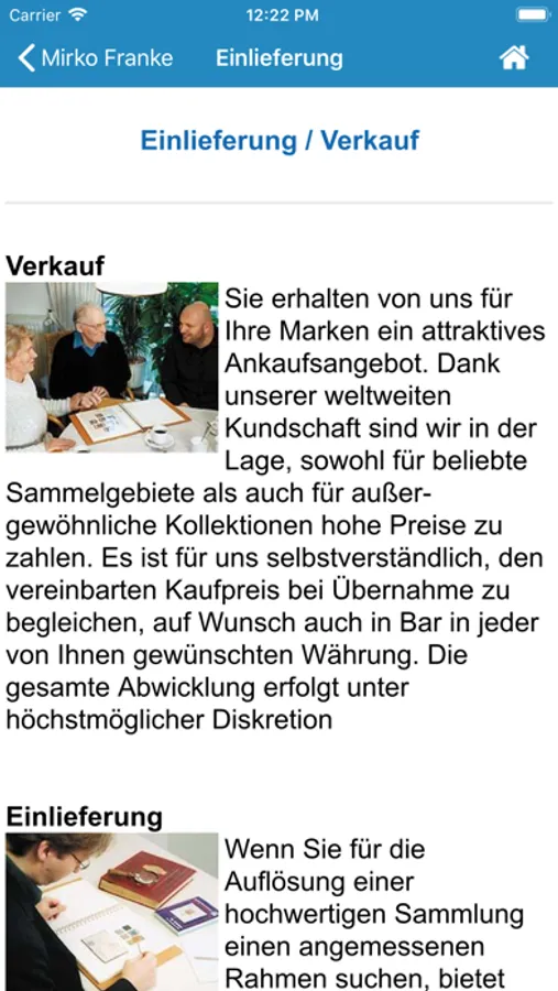 Das 1990 gegründete Briefmarken Handels- und Auktionshaus MIRKO FRANKE führt 4-5 Saalauktionen pro Jahr durch. Mit dieser APP haben Sie einen stets aktuellen Zugriff auf alle Auktionsangebote und können direkt aus der APP Gebote abgeben. Lassen Sie sich unkompliziert über das Erscheinen von neuen Auktionskatalogen sowie Sonderaktionen unseres Hauses informieren.