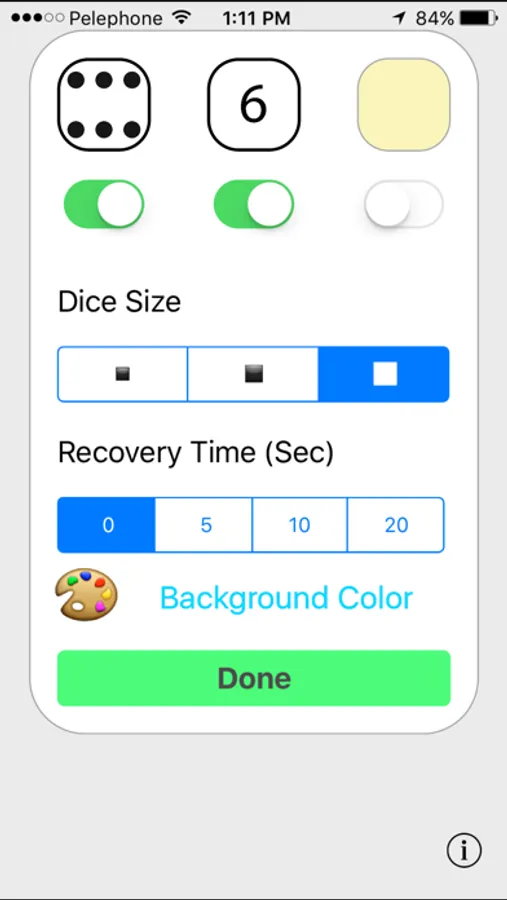 * Option to neutralize screen for a set period of time to prevent unwanted re-rolls of the dice