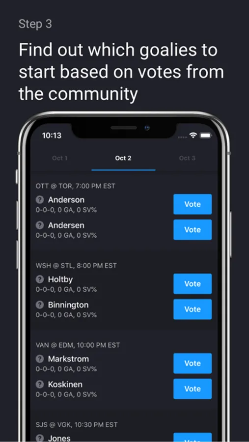 – Get starting goalie confirmations, and find out which goalies to start – based on votes from the Fleeced community