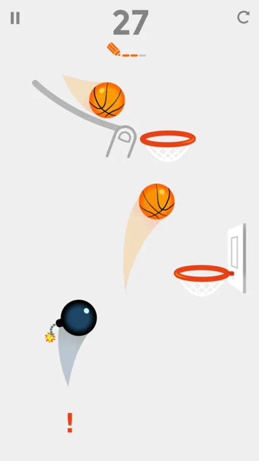 Draw a line and make the falling ball to score the basket! Time your drawings properly and avoid the bombs!