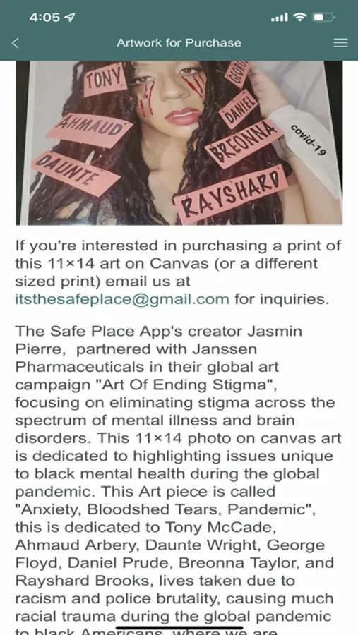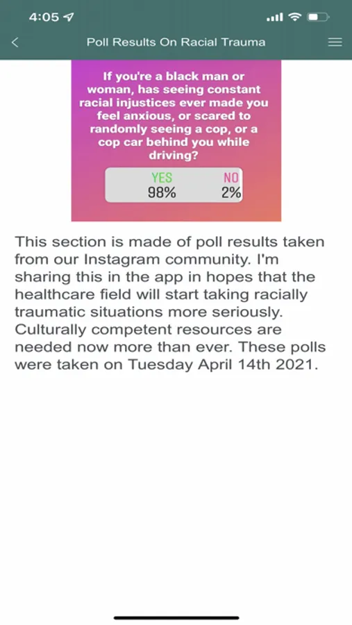 The Purpose of the "Safe Place" is to bring more awareness, education, and hope to this serious issue. Not only can the black community benefit from this app, but also mental health professionals, friends, and family, of ALL colors can be better educated on this issue and do a service by directing their black friends, co workers, etc. to the app.