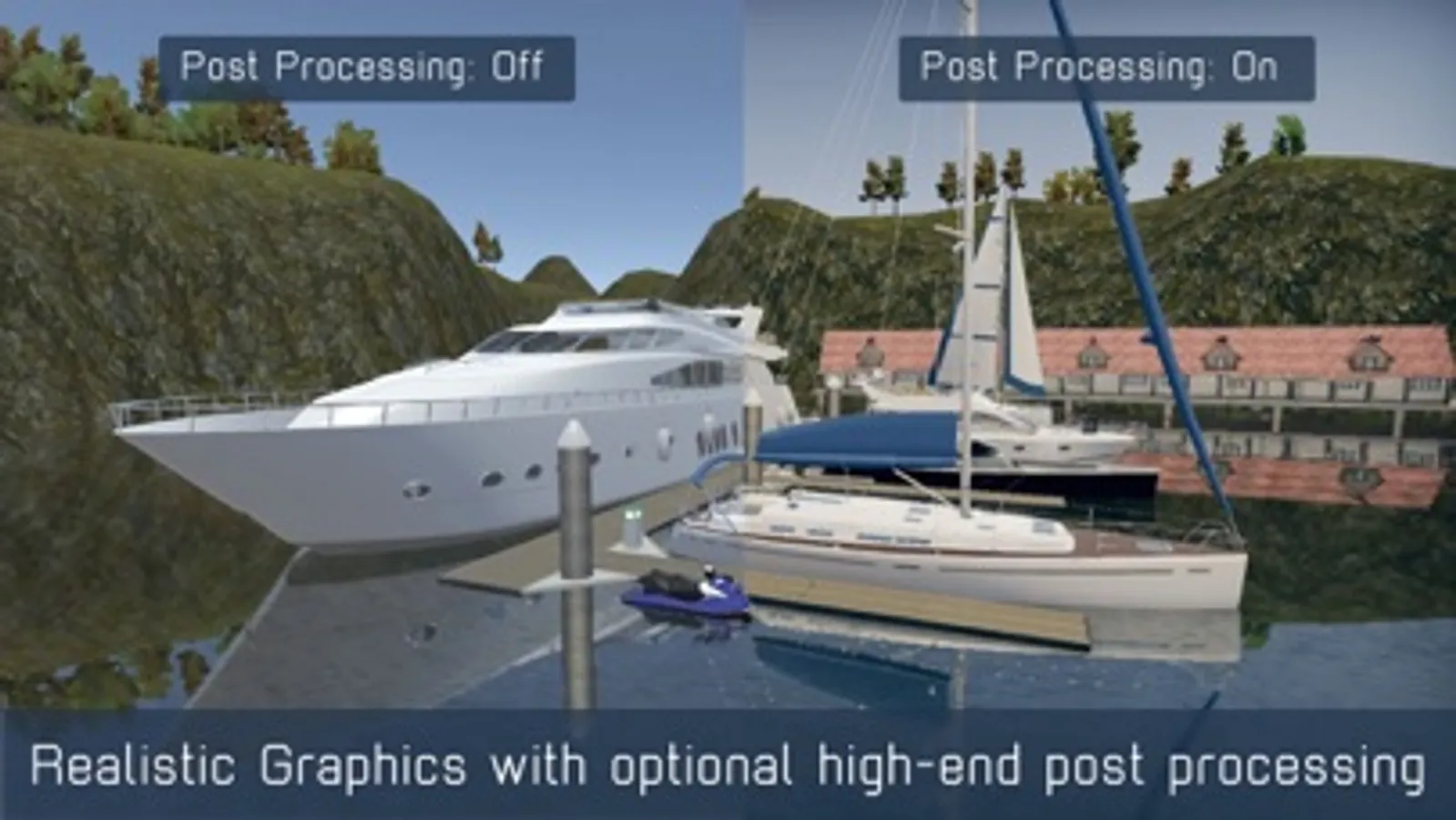 - Realistic water physics with drag based on speed and realistic boat handling (now including prop walk on the yacht)