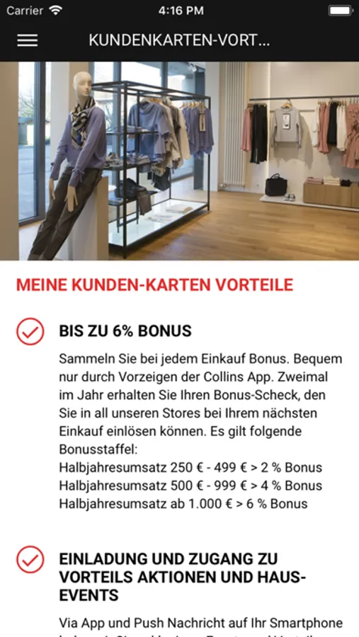 Meine Einladungen: Auch Ihre Einladungen zu unseren Events und Vorteils-Aktionen bekommen Sie direkt auf Ihr Smartphone gepusht. Auf Wunsch können Sie sich hier direkt anmelden.