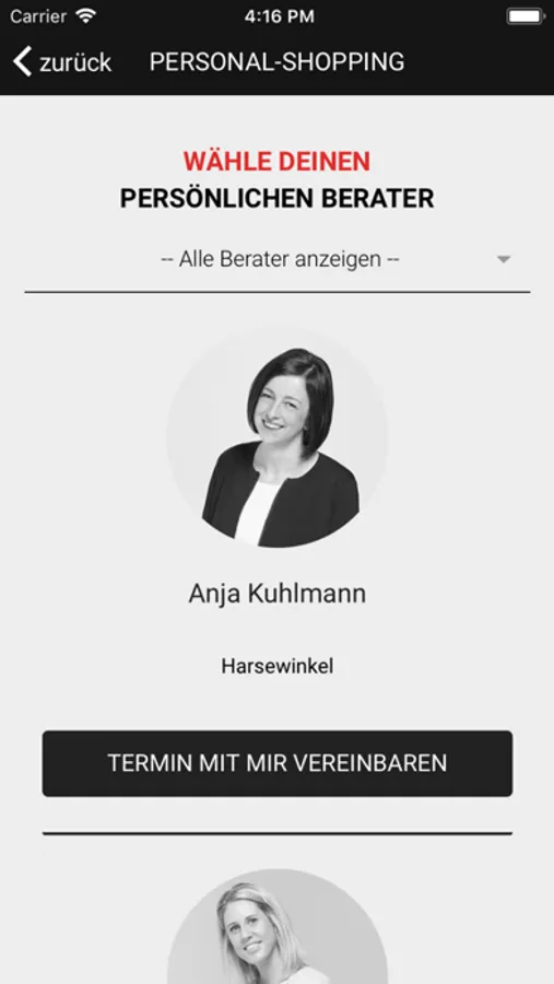 Personal-Shopping: Hier können Sie für Ihren Wunschtermin einen persönlichen Berater wählen.