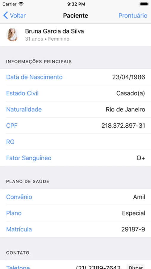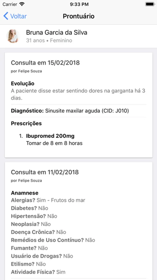 * Tenha os principais dados e o histórico médico dos seus pacientes em mãos para qualquer eventualidade.