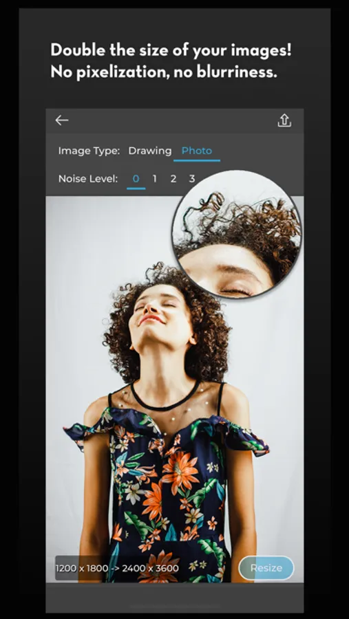 Improve the quality and clarity of your photos with Smart Resize. Our app uses advanced AI methods to double and quadruple the resolution of an image without any loss of quality, ensuring your images are crystal clear and sharp.