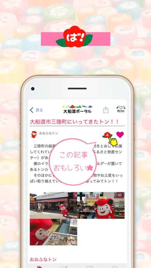 投稿記事への「いいね!」ならぬ「ば・ば・ば(方言)」機能で、会員同士繋がれるアプリとなっています。