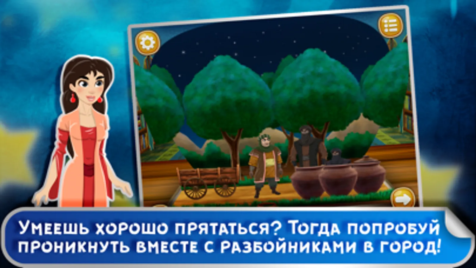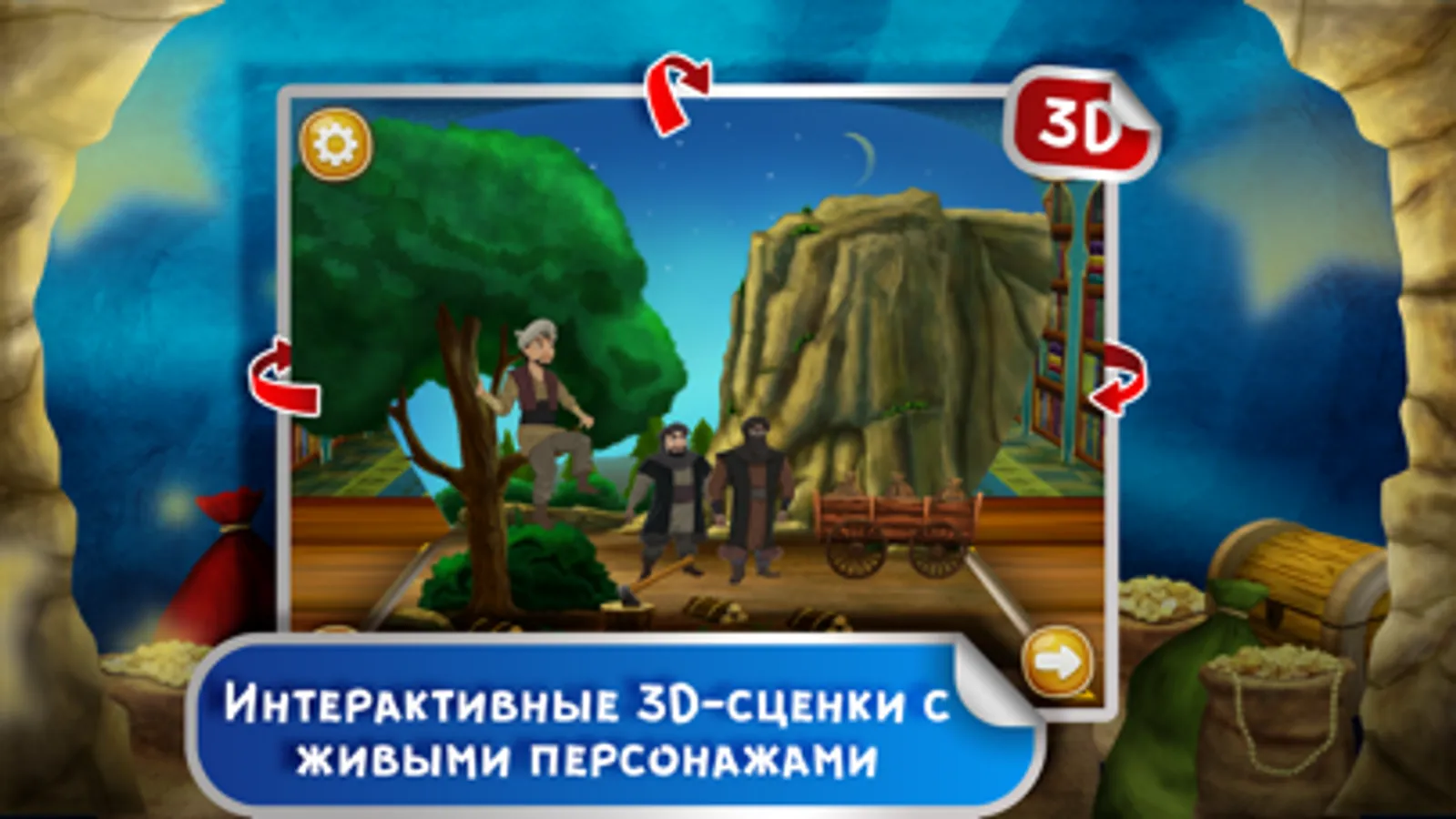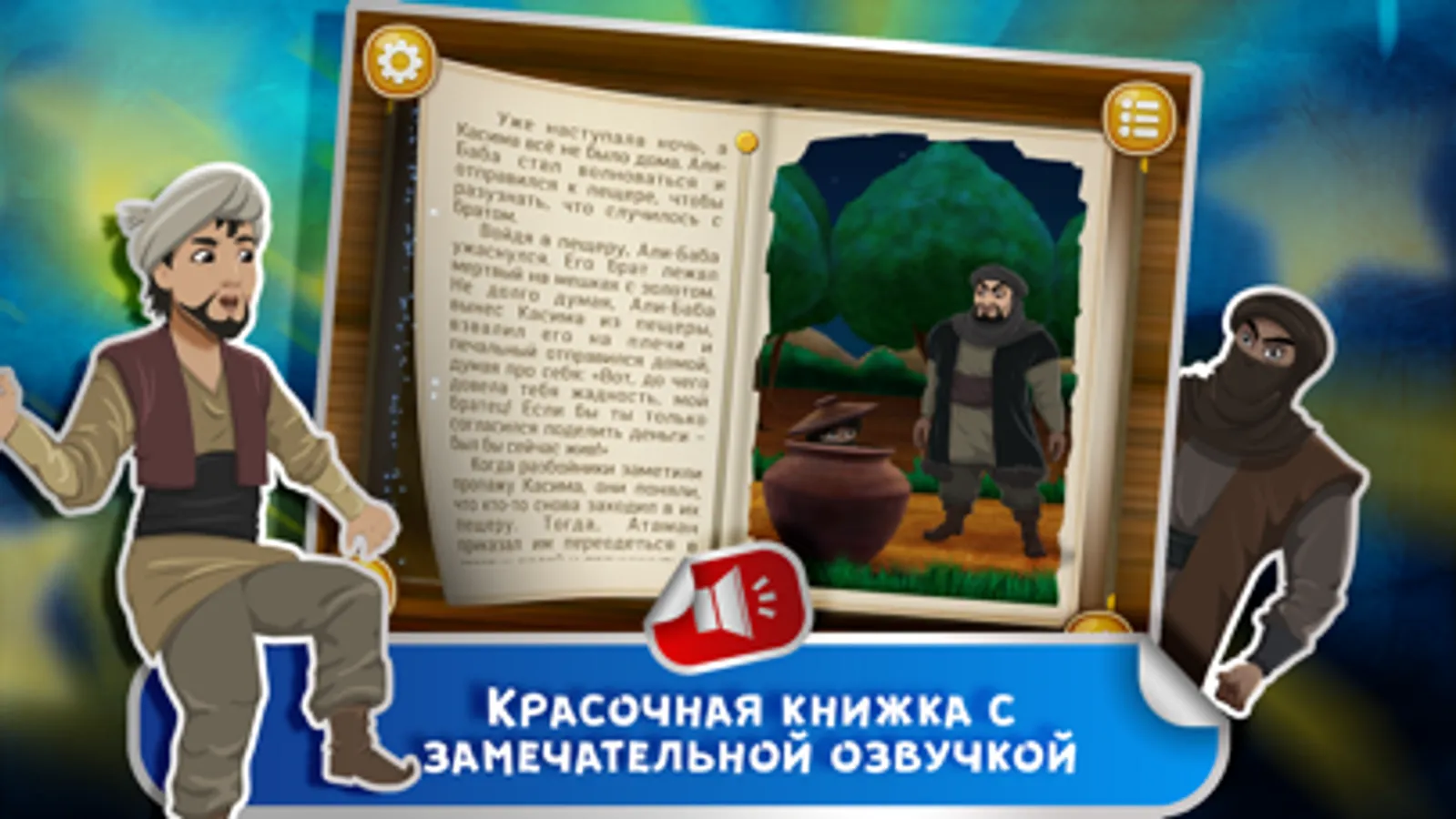 Хотите, чтобы ваш малыш с радостью постигал новое каждый день и учился любить чтение? Скачайте для него интерактивную книжку «Али-Баба и 40 разбойников» и увидите, как его глаза засияют счастьем!