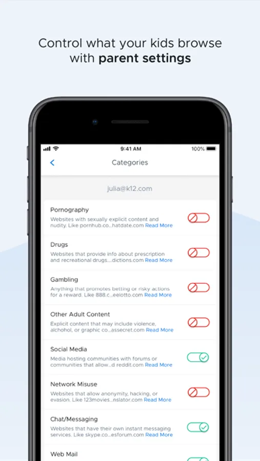 Wave goodbye to the stress that comes with sending school devices home. Securly Home is a free feature included with your school’s Filter purchase, giving parents control over their child’s school device when it goes home, including web filtering, site restrictions, and monitored screen time.