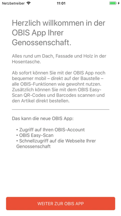 Mit der integrierten OBIS Easy-Scan Funktion können Sie Barcodes und EANS direkt in Ihrem Lager oder auf der Baustelle scannen und die Artikel direkt über OBIS in der App bestellen.