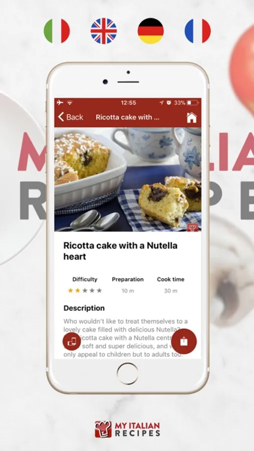 You can download this app on your shartphone or tablet. Open it, browse it and use it while you cook: all the recipes are so easy to follow! Browse the App searching some recipes by name or by category. Don't forget that our Apps are completely Ads free. If you like this specific App, click up left and download the others of our series.