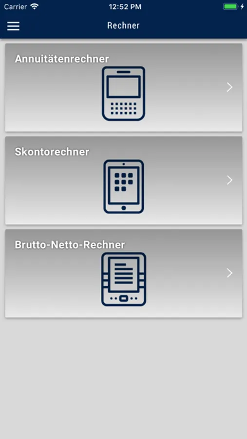 Dank der zusätzlichen Rechentools haben Sie in Besprechungen oder unterwegs alle Zahlen stets im Blick. Raten für Ihr Darlehen nicht mehr im Kopf? Einfach in der App kurz nachrechnen.