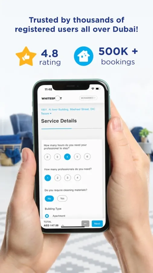 A hassle-free and instant solution to keeping your home tidy. Download the Whitespot app, book your home services within minutes and sit back and relax. Our cleaning experts will make sure your home is spotless, and our professional service providers will take care of all of your home services. Choose from Cleaning, Deep Cleaning, Pest Control, AC Service, Handyman, and Disinfection services. Currently available in Dubai.