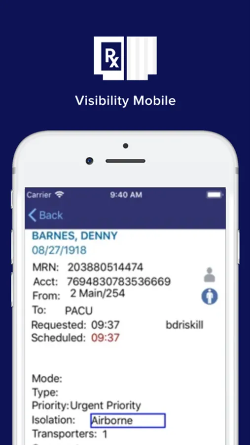 Visibility Mobile allows users to interact with Enterprise Visibility™ on Apple mobile devices. This complements the Enterprise Visibility system by providing hand held targeted content to specific user groups. Visibility Mobile v5.0 allows hospital Transport staff and Environmental Services workers the ability to receive and take action on tasks related to work they need to perform during the course of a work day.