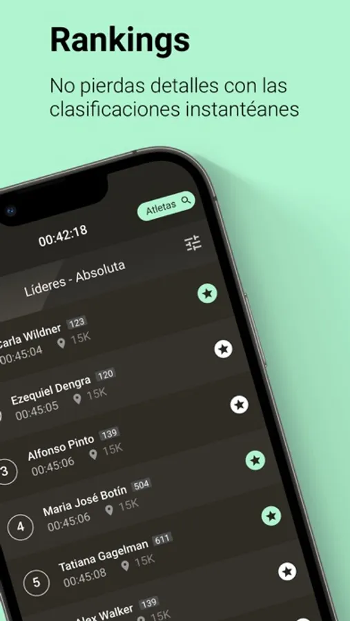Además, podrás ver de forma rápida cualquier clasificación al instante: por categorías, los primeros corredores por tramo y el último punto alcanzado de los participantes a los que sigas.