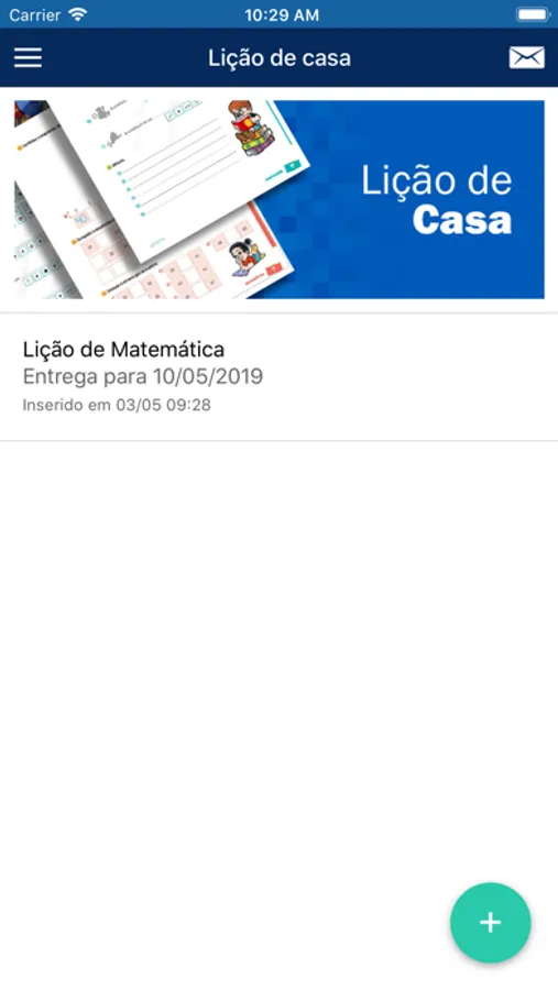 Na lista de Atividades os pais visualizam as atividades extracurriculares e extraclasse