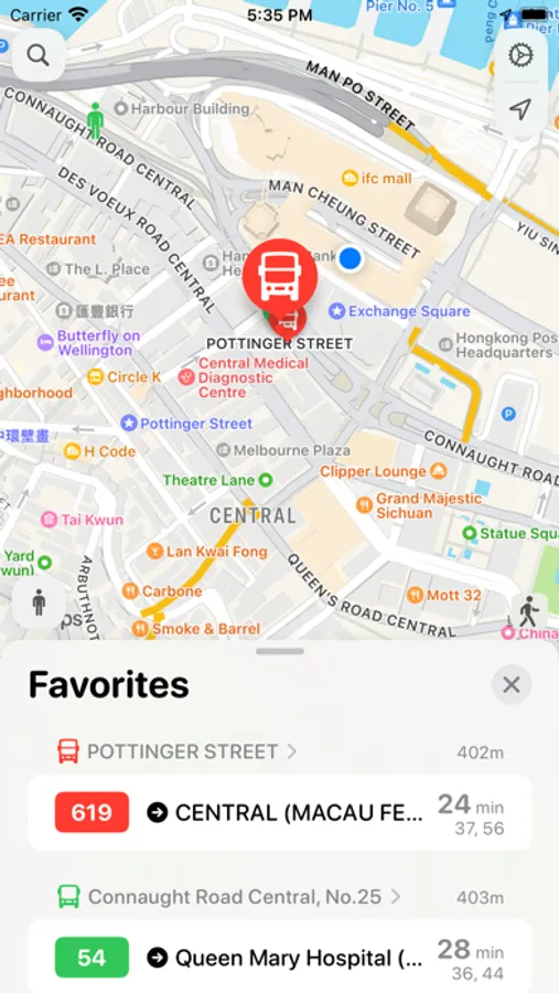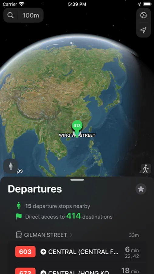 THIS IS THE PLACE is a bus transport app for Hong Kong and Singapore. It provides real-time bus arrival information, route planning, and point-to-point routing. In Hong Kong, it supports KMB, Citybus, Green Minibus, MTR Bus, and New Lantau Bus. The app also includes route maps for the MTR, light rail, and tram in Hong Kong, as well as the MRT route map in Singapore. It is also a weather app, allowing users to check the weather forecast for any location in the world and mark their favorite cities on a 3D globe. Additionally, it has a location search function, enabling users to find nearby toilets around the world or select one of the following maps for Hong Kong: libraries, cinemas, "parks, zoos & gardens", museums, or children's play rooms.