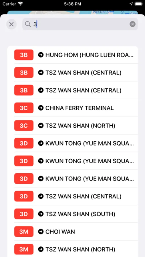 2. Find the destination you are interested in among the places you can go directly without changing buses