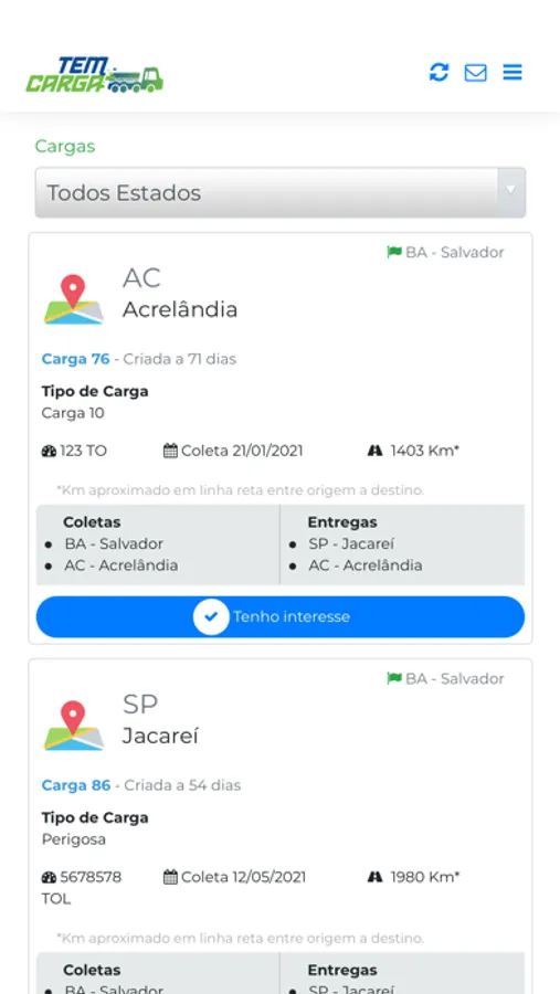 O aplicativo Tem Carga facilita a vida dos caminhoneiros pois além de ser intuitivo, possibilita: