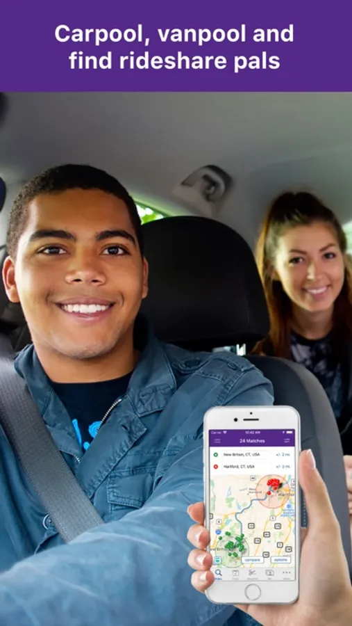Use the CTrides app to find carpools, transit, and other travel options in Connecticut. Then record your trips to see your savings, track your impact, and qualify for special rewards.
