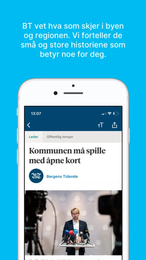 Bergens Tidendes journalister dekker Bergen og Vestlandet hele døgnet. Du får de siste nyhetene og de unike historiene fra regionen. Når det skjer noe, varsler vi deg.