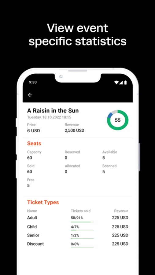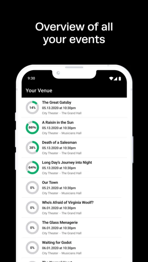 Get important insights about your venue and events. With our mobile companion, you’ll see key figures right away when logged in, and can have full access to event specific statistics.