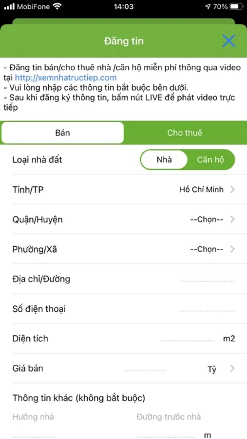 HomeLive là ứng dụng đăng tin miễn phí mua bán - cho thuê bất động sản, kết nối trực tiếp người mua và người bán, thông tin nhanh và chính xác thông qua hình thực tế và video phát trực tiếp.