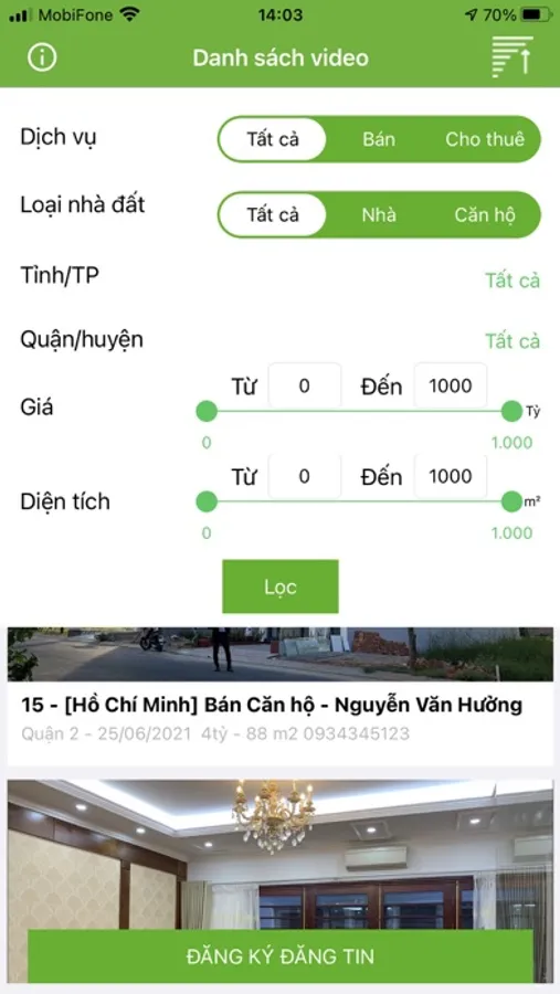 • Lọc tìm kiếm thông tin bất động sản tiện lợi.