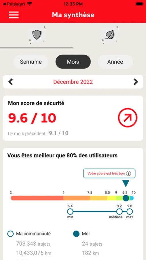 L’application Conduire enregistre automatiquement et analyse tous vos trajets pour vous donner :