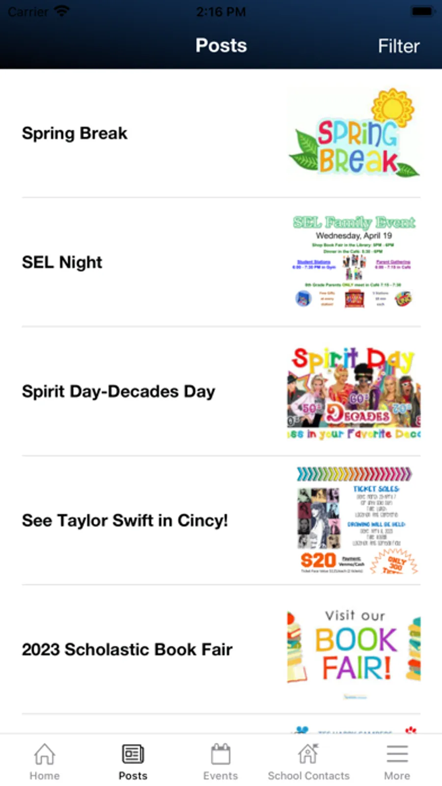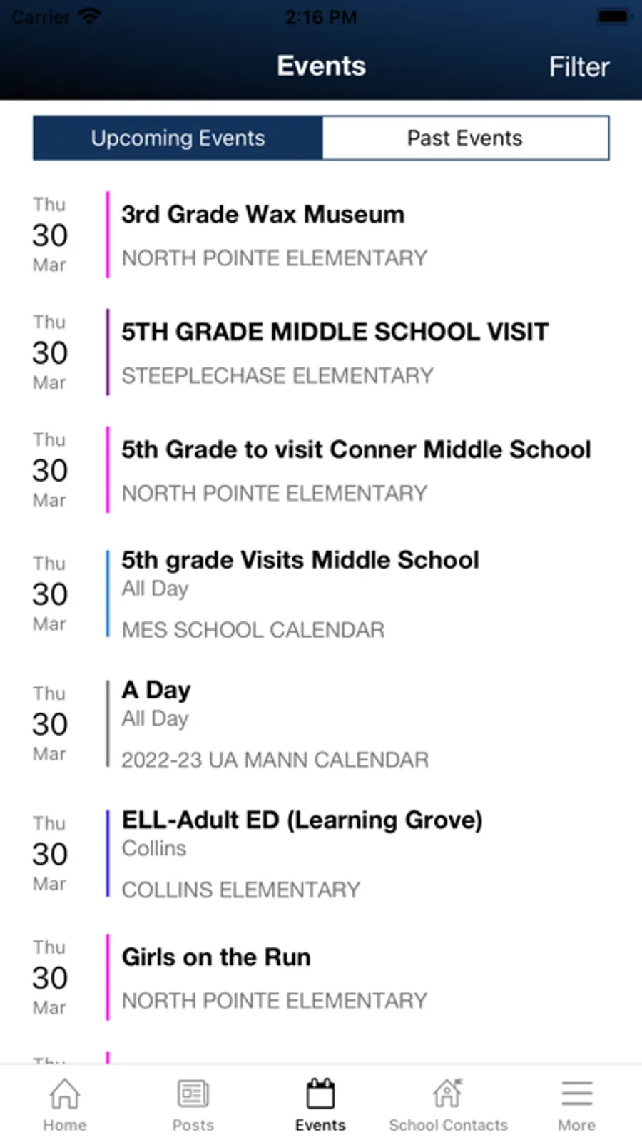- Calendar events