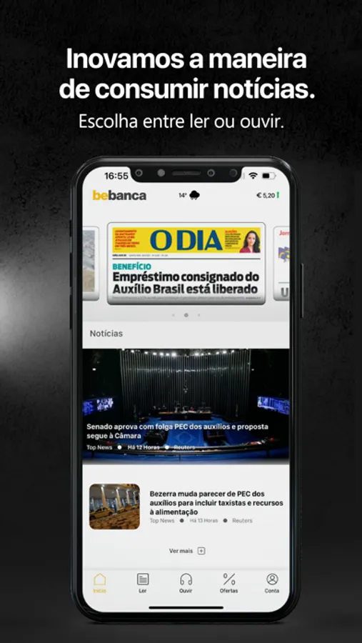 Na palma da sua mão e com alguns cliques, você terá acesso às notícias diárias dos maiores veículos de comunicação do país para ler onde e quando quiser.