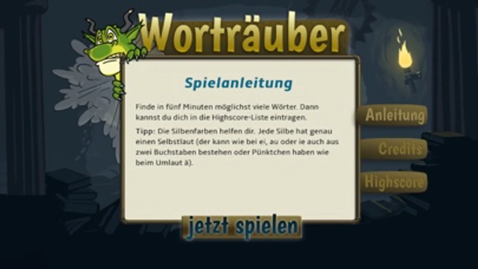 Worträuber ist eine Lese-Schreibspiel-App für Kinder ab 7 Jahre.