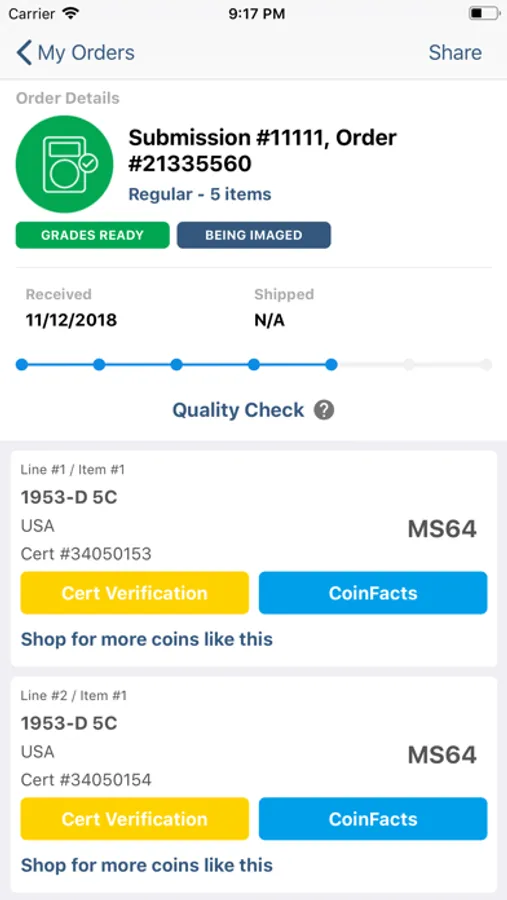 Tired of waiting to find out what your grades are or impatiently refreshing your orders? Have you ever needed to refer to a specific coin or order you submitted while on the go? Wouldn't it be nice to easily text or message someone an order you shared? Now you can! PCGS members can now access and manage their accounts from anywhere with the NEW PCGS My Account app!