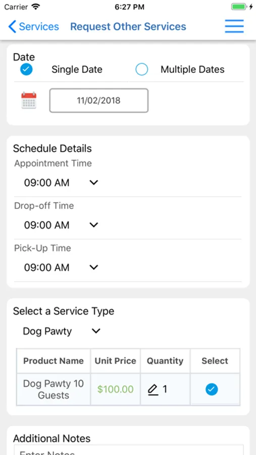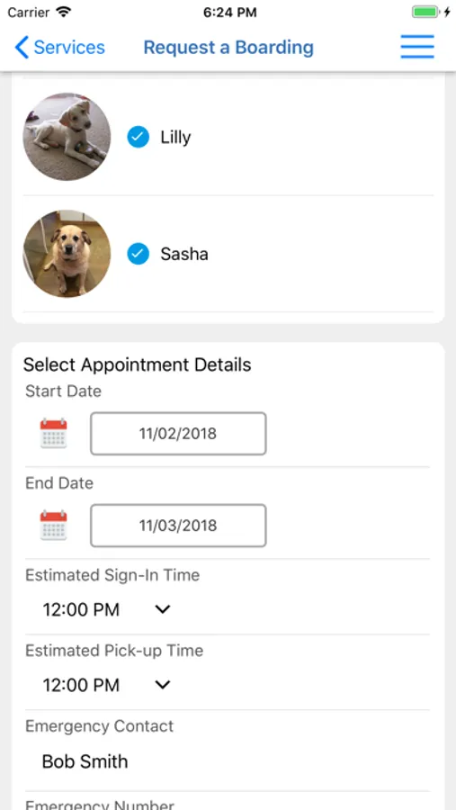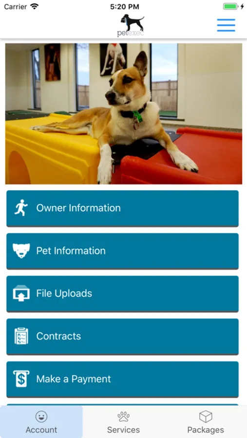 Designed to compliment the PetExec owner portal, this app allows the pet owner to easily schedule or request daycare, boarding, grooming, and other services to the company associated with their account. In addition to scheduling services, the PetExec Mobile app gives you the ability to sign contracts, manage your information including contact, email settings, file uploads, packages, and more.